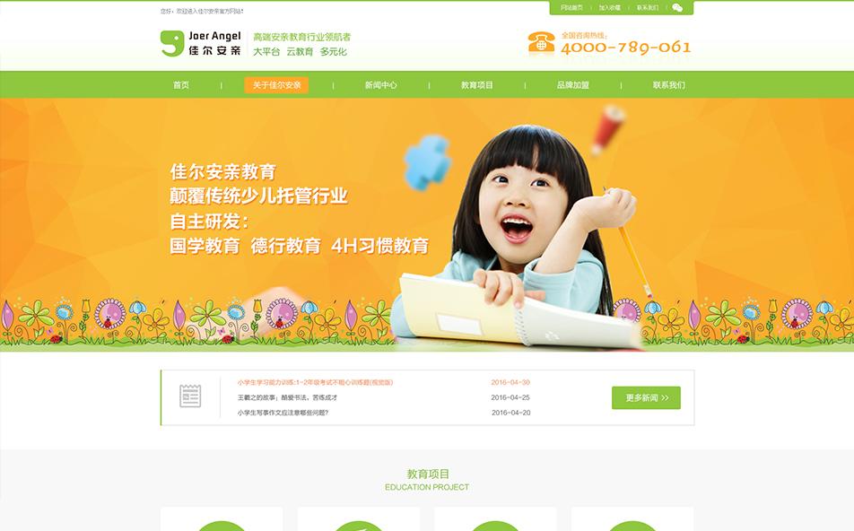 洛陽佳爾安親教育科技有限公司于2014年注冊成立,注冊資金600萬人民幣,佳爾安親在中國21世紀教育行業,橫空出世,一馬當先,為當今高端安親教育行業打造領導品牌。